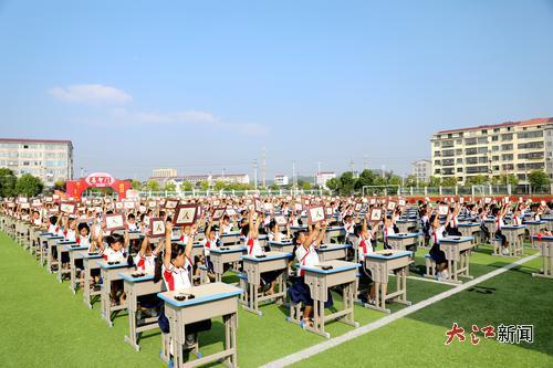 10月11日,吉安市峡江县第二实验小学学生展示自己书写的“人”字。 大江网 宋靖辉 摄
