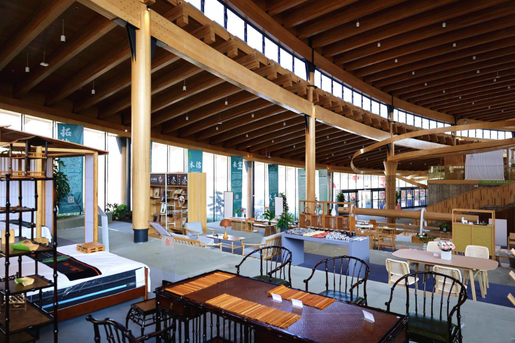 在江西资溪竹科技博物馆内,展厅的竹产品包括博物馆建筑材料大部分产自资溪。王晓震 摄