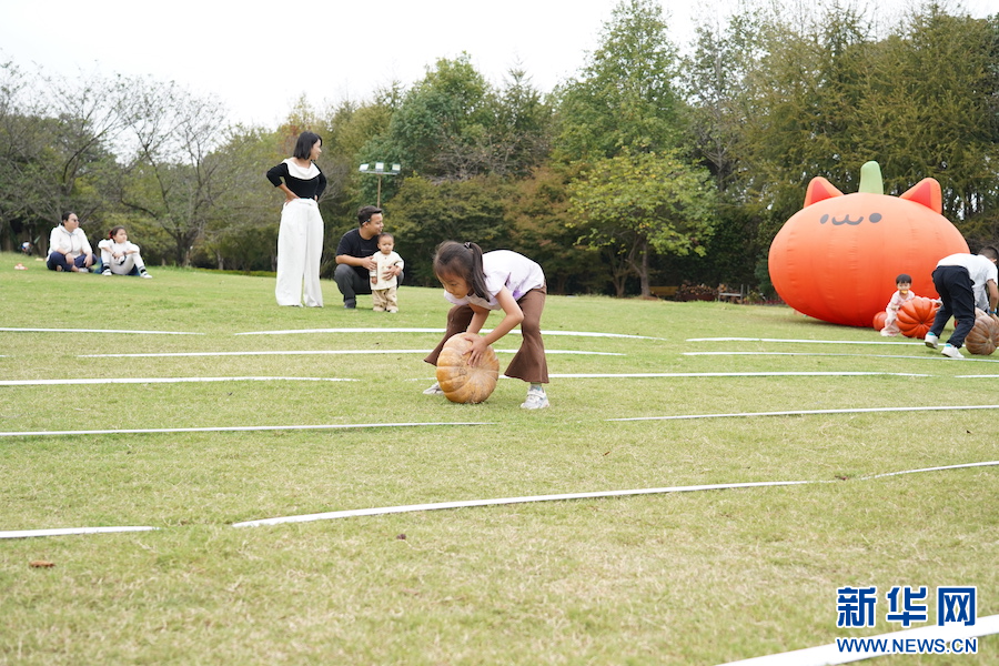 10月18日,江西南昌凤凰沟景区内秋意盎然。一场充满趣味与活力的滚南瓜亲子接力赛在这里举行。参赛选手们推滚着南瓜,你追我赶,好不热闹。跑道上,滚动的南瓜与奔跑的身影相映成趣,构成了一幅生动的秋日亲子欢乐画卷。