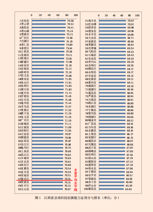 在江西省科技厅、江西省统计局的大力支持下,江西省科学院从2015年开始进行县域科技创新能力评价研究,已连续8年发布《江西省县域科技创新能力评价报告》,通过综合分析江西省统计局、江西省科技厅、江西省市场监督管理局(知识产权局)、江西省科学技术协会等部门采集的数据及实地调研,对全省的县区科技创新能力进行全面综合的系统评价,并提出有针对性的对策建议,为各县(市、区)提升本区域科技创新提供有力的支撑。