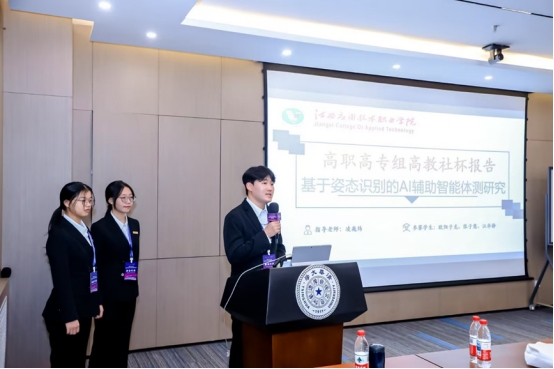 江西应用技术职业学院获奖团队学生欧阳子龙作高职高专组高教社杯学术报告。