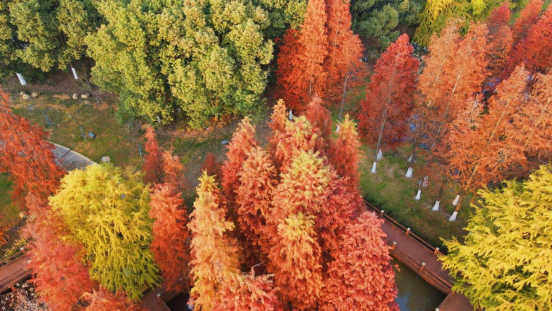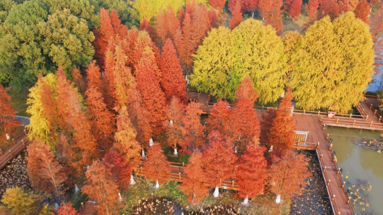 凤凰沟风景区是国家4A级旅游景区,被誉为“南昌后花园”。不同于春夏的繁花似锦,冬季的凤凰沟凭借其特有的水杉景观,展现出一番静谧而热烈的美感。从空中俯瞰,生长在湿地与茶园旁的水杉树高大挺拔,锈红色的树冠连绵成片,与周围依旧苍翠的植被交织出一幅巨大的自然油画,色彩对比鲜明,景色醉人。(虞亮亮)