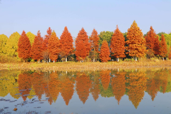 时值仲冬,位于江西省南昌县黄马乡的凤凰沟景区,迎来了一年之中别具韵味的色彩盛宴。景区内水上森林的大片水杉林,纷纷换上了鲜艳的“红装”,在碧水蓝天的映衬下,层林尽染,如诗如画,吸引了众多游客与摄影爱好者前来打卡。