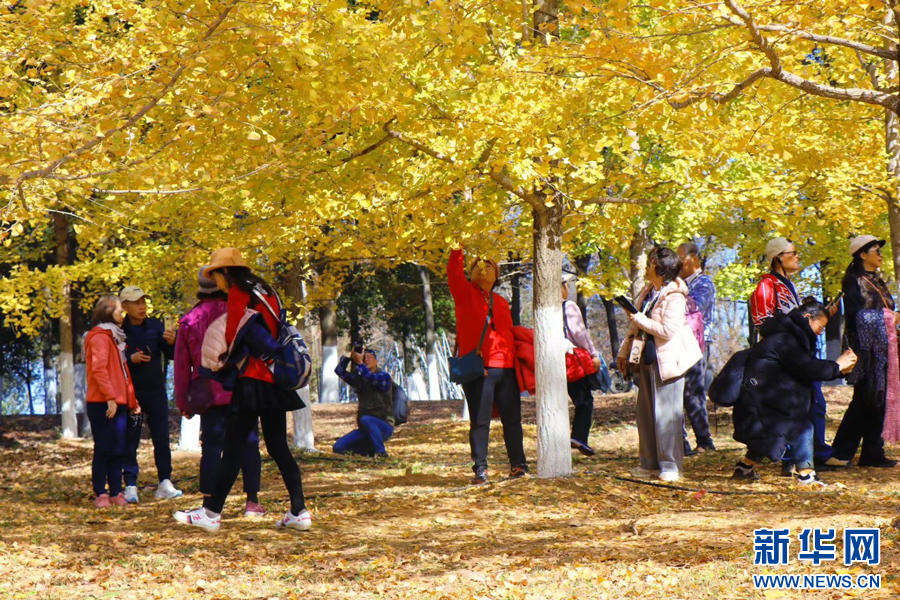 凤凰沟景区的银杏林吸引众多游客前来游玩。新华网发 虞亮亮 摄