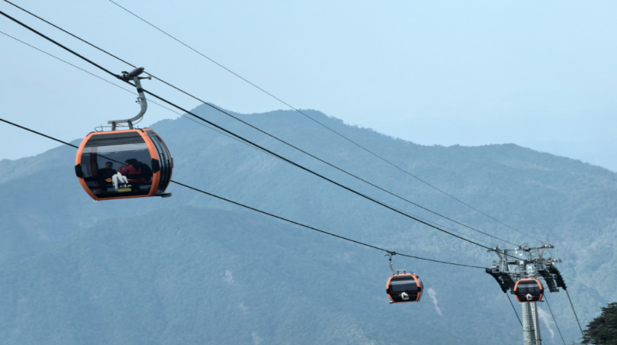 总长2965米,高差1012米,10分钟的直线穿越,三清山港首索道连接的不仅是地理空间,更是一条通向“绿水青山就是金山银山”的实践之路。