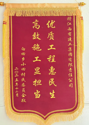 近日,江西建工国内接连收到两份特殊的“礼物”——分别来自合作伙伴与村民委员会的两面感谢锦旗。锦旗上的鎏金大字,不仅镌刻着合作伙伴与百姓的由衷认可,更彰显了江西建工的专业、担当,为新一年的发展注入了温暖动力。