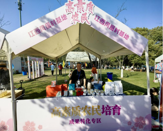 春染凤凰沟,樱红促振兴。近日,随着“樱为有你郁见美好”2026江西黄马·凤凰沟第十九届樱花主题旅游活动的启幕,南昌县黄马乡凤凰沟景区内游人如织,花海与人海相映成趣。在这场春日文旅盛宴中,一抹来自“高素质农民”的茶香格外引人注目。高素质农民培育农文旅融合班学员王星星带着他的铜鼓宁红茶走进景区,依托跟踪服务机制,将培训课堂的“学用转化”延伸到了市场一线的“展销实战”。