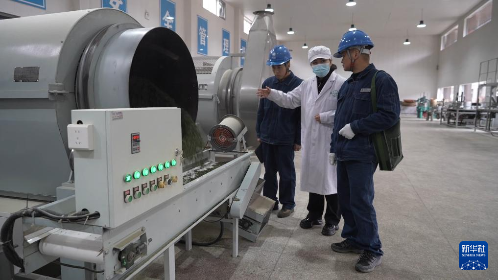 在茶叶加工车间,自动化生产线有序运转,工人们根据鲜叶等级分类加工。相关部门工作人员深入茶叶加工企业,提供指导支持。