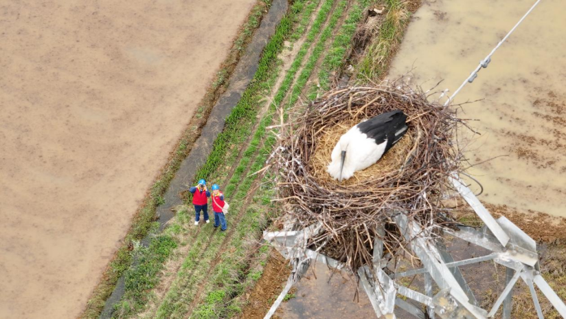 在南昌,国网进贤县供电公司梅庄供电所运维人员对110千伏梅洪线开展专项巡视时,发现国家一级重点保护野生动物东方白鹳的巢穴痕迹与活动踪迹。工作人员第一时间做好现场记录,保持安全距离,避免惊扰,并联合相关部门启动后续监测保护工作。巡线途中,工作人员还向沿线村民发放宣传手册,讲解电力设施与野生鸟类保护知识,引导群众共同守护生态与电网安全。