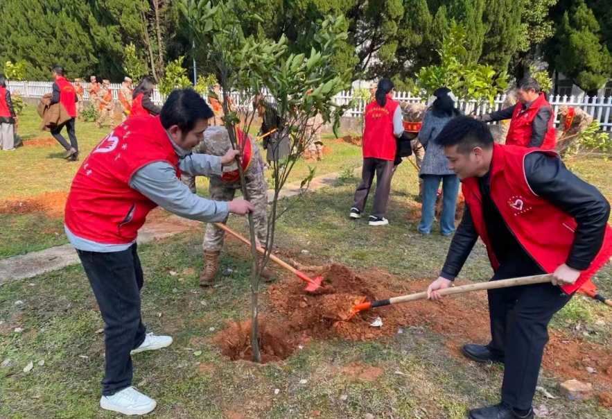 广信区人武部联合退役军人事务局、驻军某部共同开展“军民共建双拥林”植树活动。活动现场,200余名官兵、退役军人及志愿者分工协作,挥锹培土、扶苗浇水,共栽种马家柚、金桔等果木树苗200余株。活动同步开展“党建引领添新绿 双拥共建情更浓”主题党日活动,厚植军民鱼水深情,共绘军地融合发展新图景。