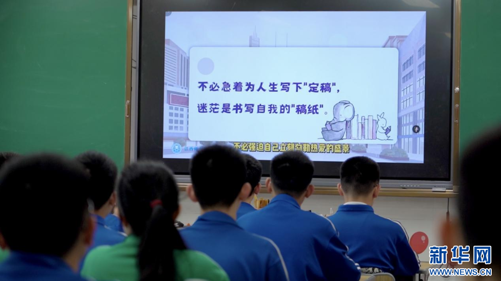 同学们正认真观看课前“成长8分钟”心理辅导微视频。新华网发