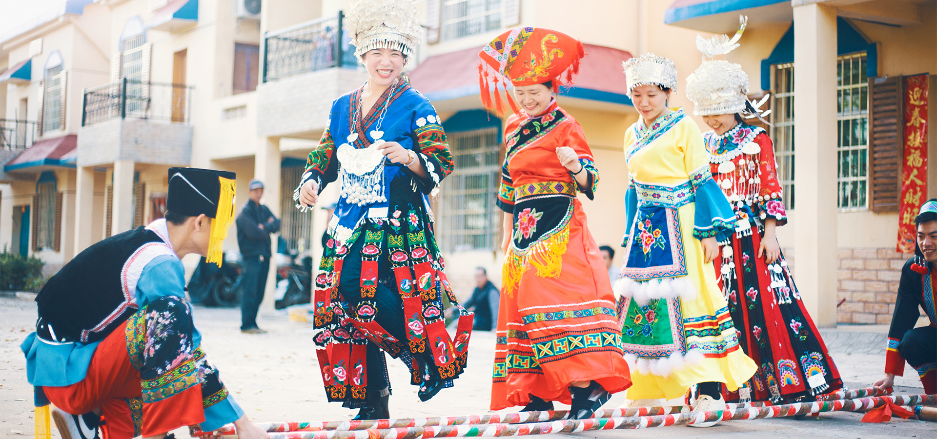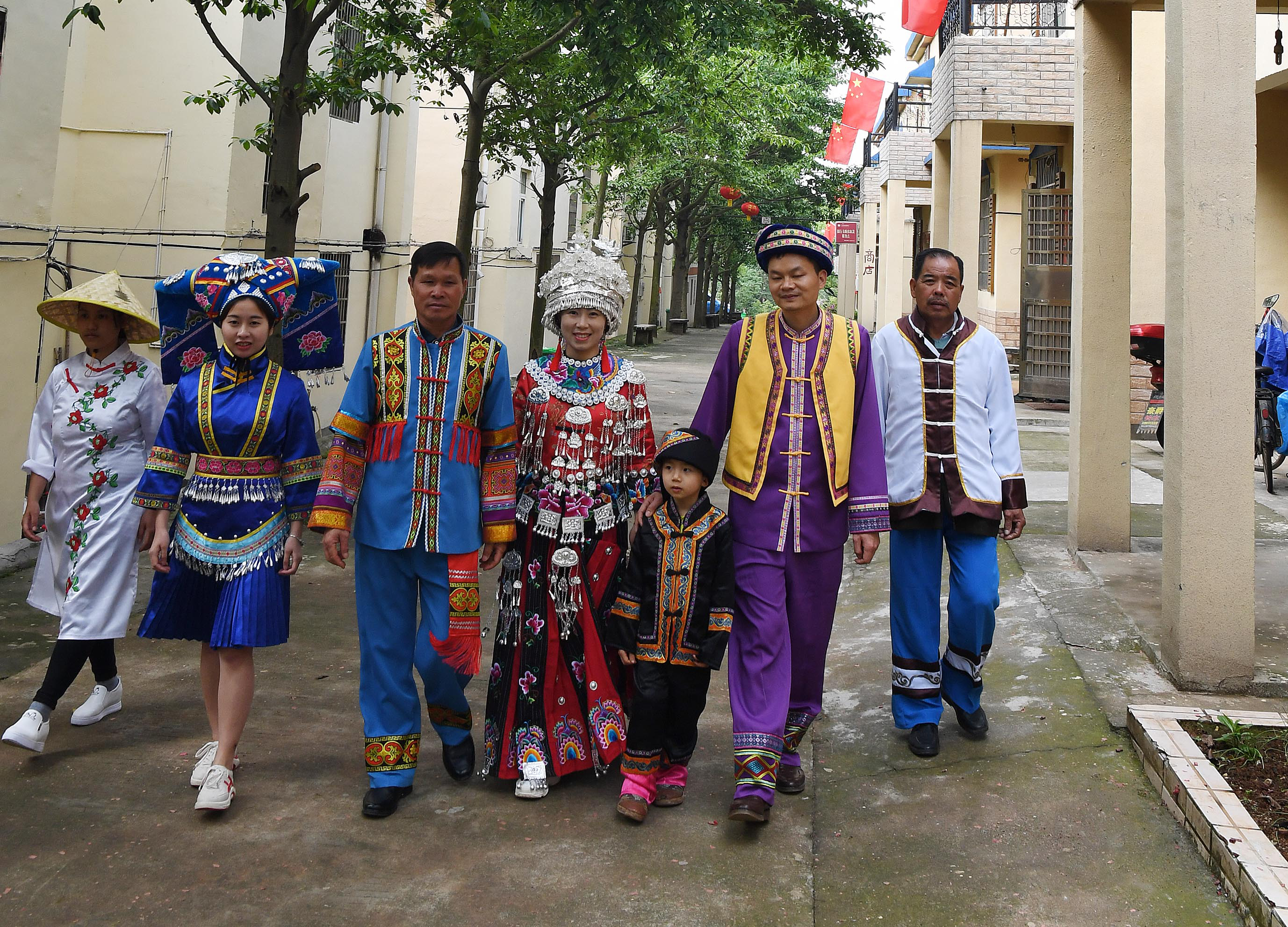 居住在敖山镇洋林村和大坪村的村民,由汉、瑶、壮、京、傣、侗、苗7个民族组成,他们像彩虹的7种色彩一样,明艳靓丽又紧紧抱在一起,孕育出斑斓文化。